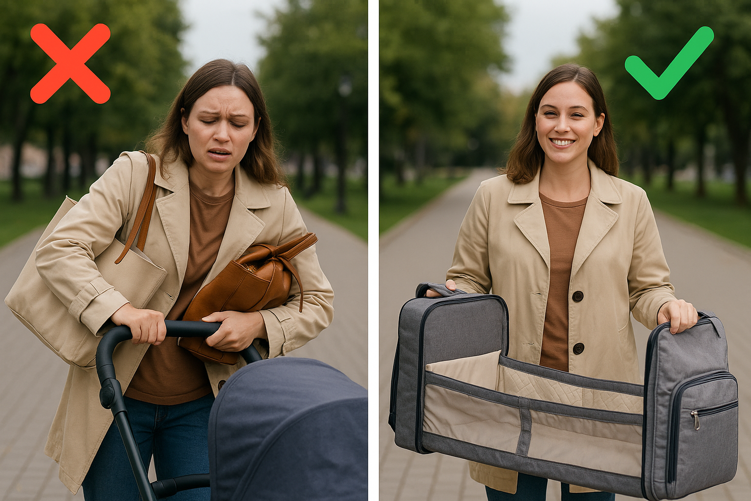 ✔ Stylish & practical – looks like a chic diaper bag, functions like magic.